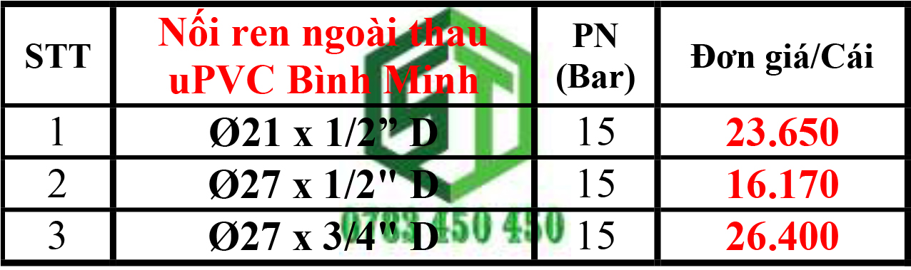 * Quý khách hàng vui lòng liên hệ qua Hotline/Zalo: 0783 450 450 để được báo giá tốt – Bảng giá ống nhựa uPVC Bình Minh và Phụ kiện Mới Nhất >>> CLICK XEM – Bảng giá ống nhựa PPR Bình Minh và Phụ kiện Mới Nhất >>> CLICK XEM – Bảng giá ống nhựa PPR Vesbo và Phụ kiện Mới Nhất >>> CLICK XEM