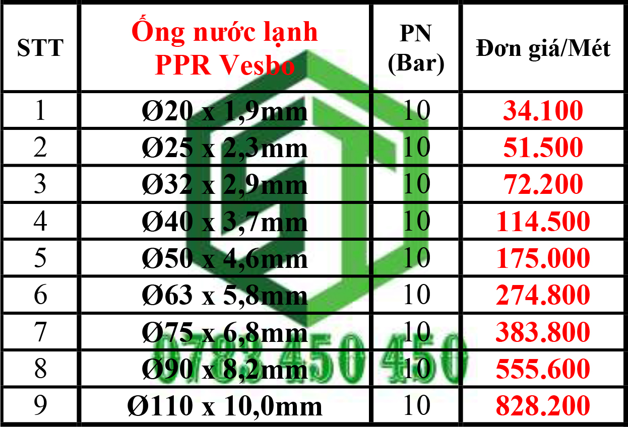 – Bảng giá ống nhựa PPR Vesbo và Phụ kiện​ Mới Nhất >>> CLICK XEM