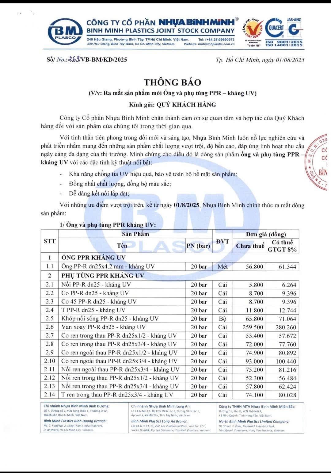 – Bảng giá ống nhựa PPR Bình Minh và Phụ kiện Mới Nhất >>> CLICK XEM
